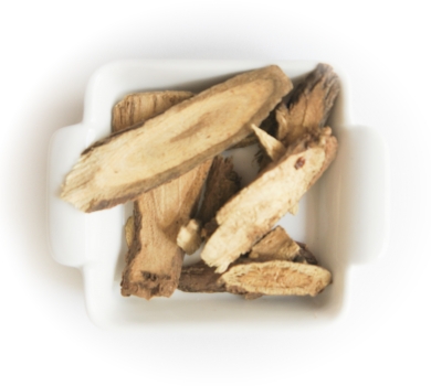 La raíz de regaliz puede ser utilizado para ayudar con catarros respiratorios superiores y es reconocido por los médicos tradicionales chinos como un adaptógeno, ayudando al cuerpo a lidiar con el estrés diario. También se puede utilizar para aliviar el malestar abdominal menor, y se utiliza en la preparación a base de hierbas STW-5 para aliviar la dispepsia.