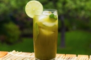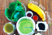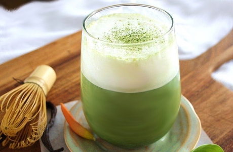 Agregue todos los ingredientes a la licuadora y licúe hasta que quede suave.Notas : Matcha té verde contiene el aminoácido L - teanina que calma , que estimula las ondas cerebrales alfa, dejándole en un estado de alerta relajada.